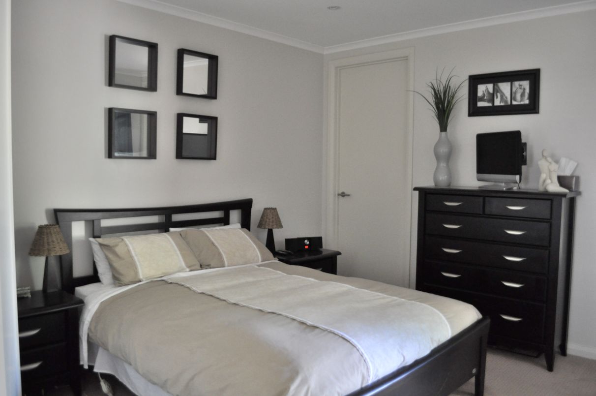 The master bedroom with double entry doors also features a glass sliding door out to a fully decked underoof patio, a walk in robe and a two piece ensuite bathroom with walk through shower, floating vanity with vessel basin.