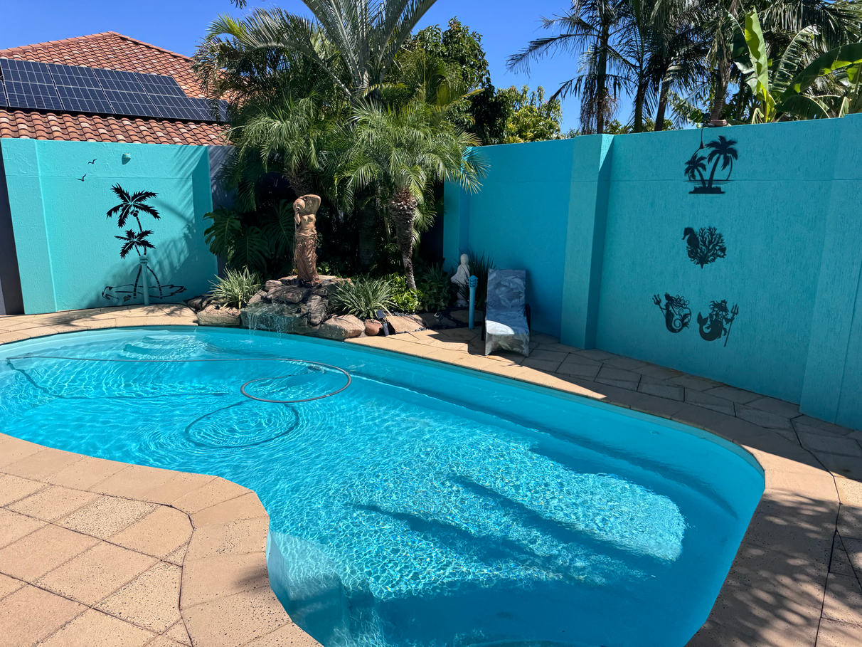 Step outside and enjoy your own very private outdoor tropical paradise - dive into your pool or sit back, relax and listen to the tranquil waterfall. Entertainers will be delighted by the large outdoor entertainment patio area with pitched cedar wood ceilings and Hampton Style window shutters to the west wall allowing all year entertaining. There is a BBQ/Alfresco kitchen with a sink and bar fridge. The BBQ is connected to the mains gas supply.