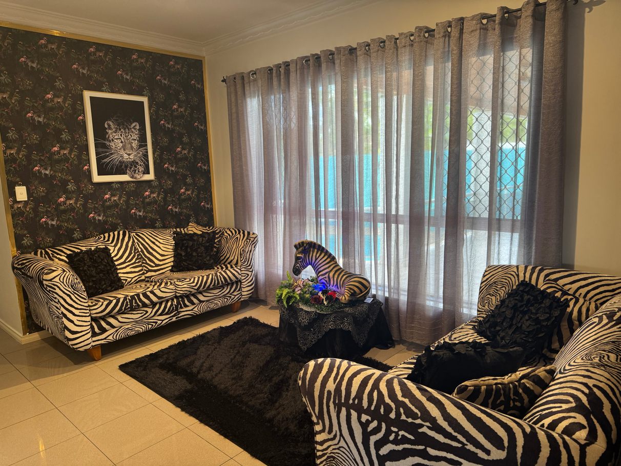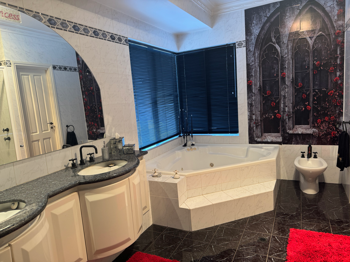 This stunning property sits on a spacious 1,013 square meter block, boasting a generous 455 square meter executive style home with high end finishings, including extensive use of granite in the kitchens and bathrooms, vitrified flooring, high ceilings, solid wood internal doors, floor to ceiling tiling in bathrooms and powder room, WIR in master, BIR in three other bedrooms. The home boasts extensive built in storage and cupboard space throughout.