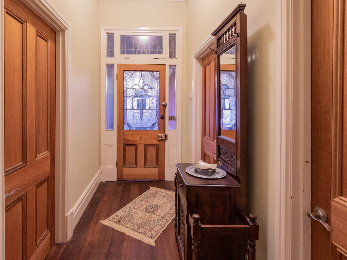 You enter the home via the front verandah, through a lead light door, into an inviting hallway that also accommodates the entry of not only the bedrooms but also to a fully functional loft that is located above. At the end of the hallway there is another lead light door that opens into the living areas.