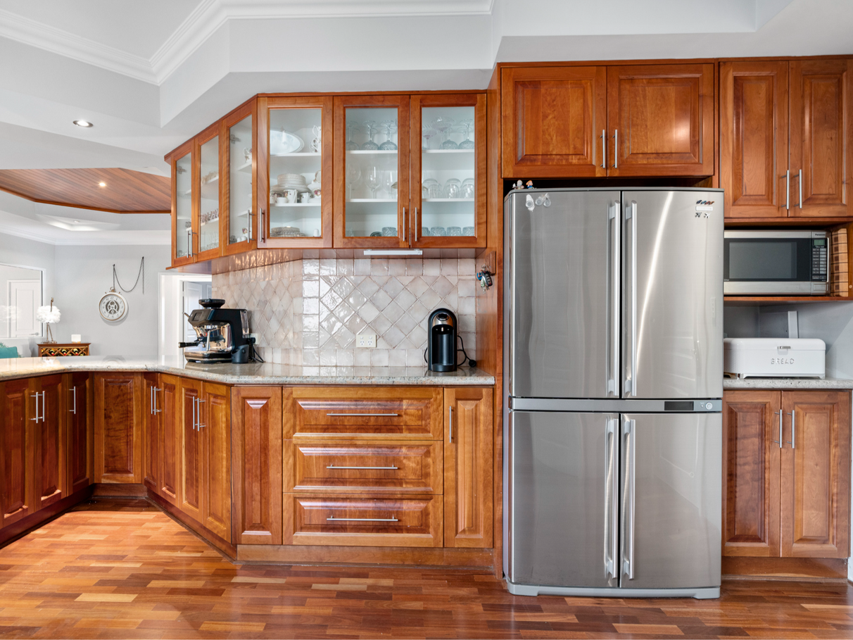 Inside, the scale is breathtaking. The chef’s kitchen forms the heart of the home, showcasing stone benchtops, cabinet-to-ceiling tiles, a walk-in pantry, and premium appliances, including a 900mm Baumatic gas stove and oven, Euromaid dishwasher, and dual sink. Every element has been designed for both performance and beauty, creating a kitchen that is as stunning as it is practical.