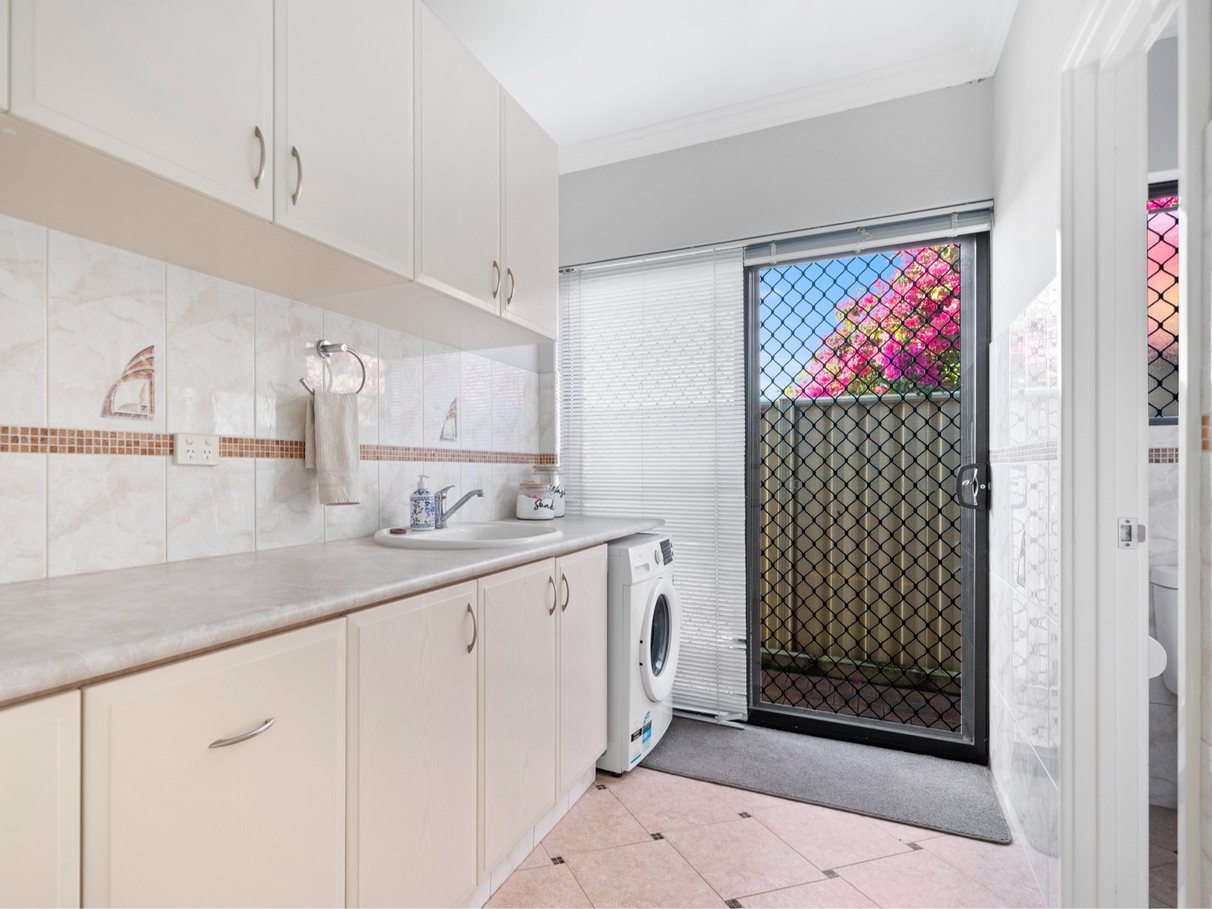 • Separate laundry with overhead cabinetry and a dedicated washroom