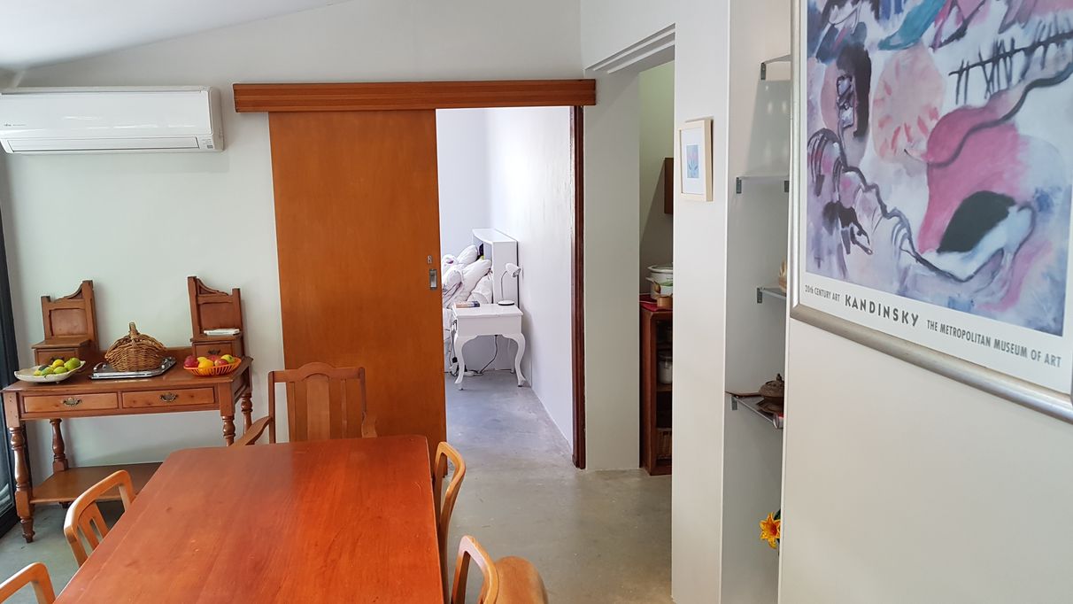 New, polished jarrah floor boards and sealed concrete floors throughout