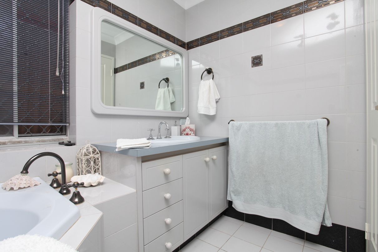 There are three spacious bedrooms, the main bedroom having mirrored robes and a fan. The family bathroom is large, with a shower and a spa bath. The spacious air- conditioned lounge/ dining adjoins the brand new superbly renovated kitchen - with huge free standing island, stone bench tops, abundant storage, quality cooking appliances and dishwasher. This design continues through to the new very functional laundry.