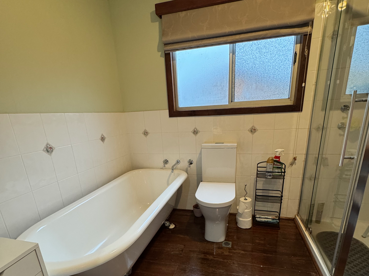 The bathroom is designed with a little bit of luxury with a feature claw foot bath and the second new hi rise toilet plus a heated towel rail and it’s a heated bathroom.