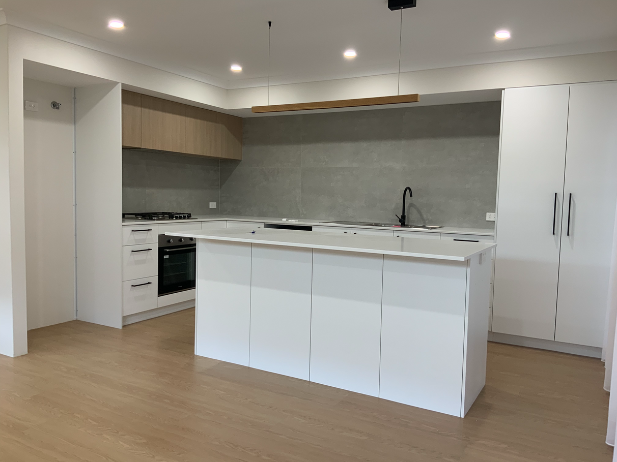 • Spacious open plan kitchen with electric oven, gas cooktop, dishwasher