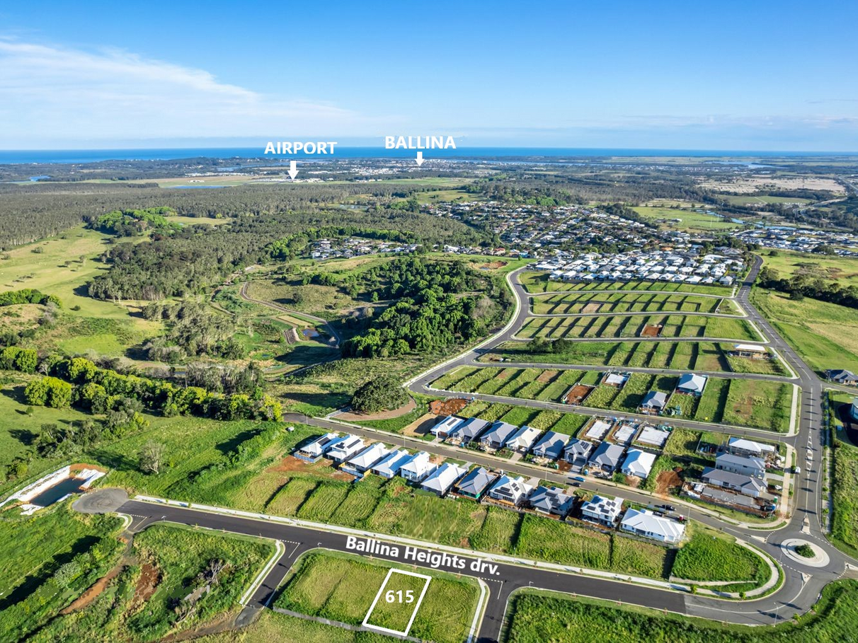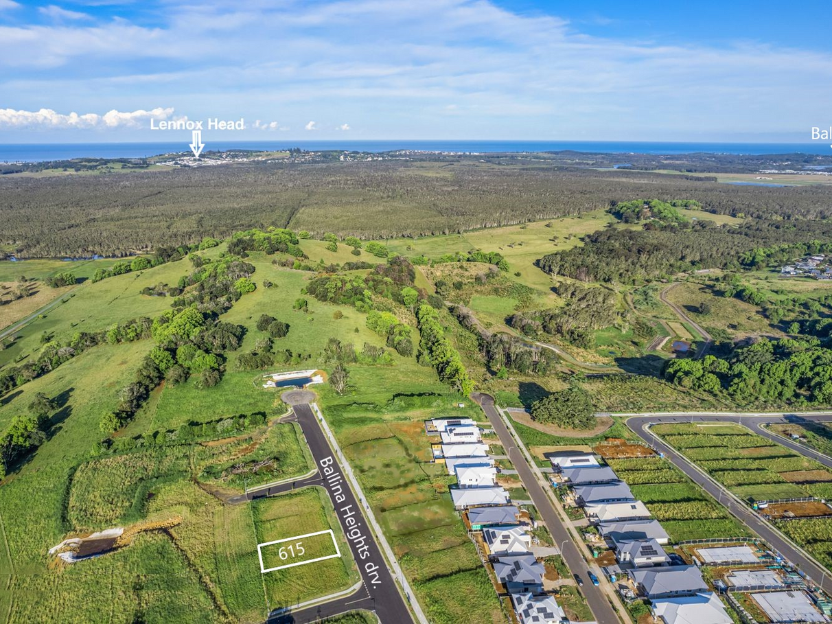 Premium Elevated Land in Exclusive Banyan Hill Estate - North Ballina | Northern Rivers with expansive views. Nestled just north of Ballina airport 'Banyan Hill Estate' capitalises on the site’s unique topography, elevations and natural landform. A spectacular panorama of coastal and hinterland views, spanning nearby headlands and the Pacific Ocean. Lot 614 is classified a premium lot, situated at the highest point of the Estate, with elevated views to breath-taking landscape of rolling hills, natural waterways with views to the ocean and the distant Byron Bay lighthouse light.