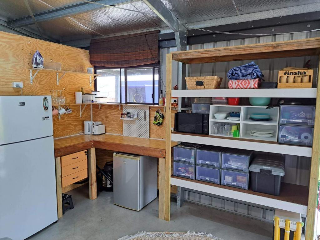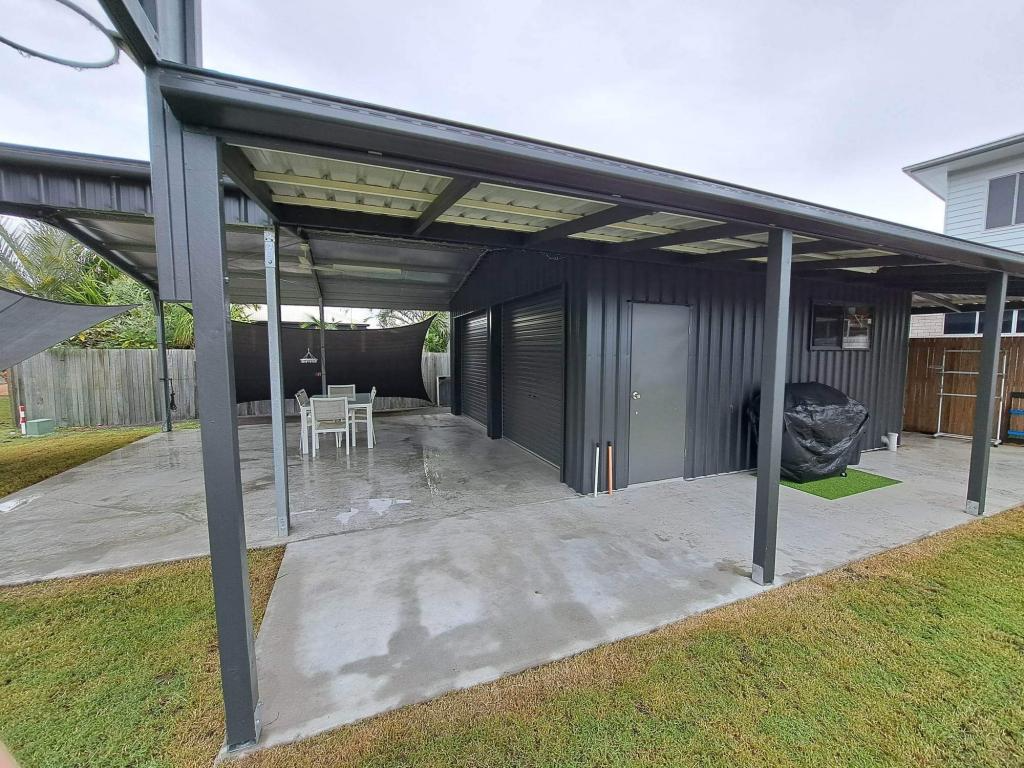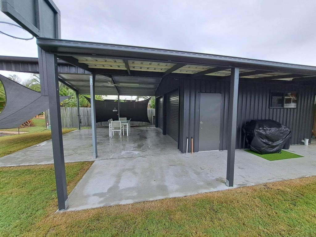 There is a 6m x 12m shed/carport with power, toilet, outdoor/hot and cold shower.