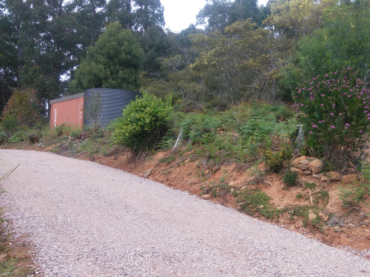 The property has water, secured in a 24,000 litre metal tank collected from a constructed roof over a six metre shipping container at the top of the property (currently used as storage - complete with inbuilt shelving). Plenty of space for additional tanks as required. All water piping is installed to your house site and beyond, designed to gravity feed downhill without the need of pumps etc.