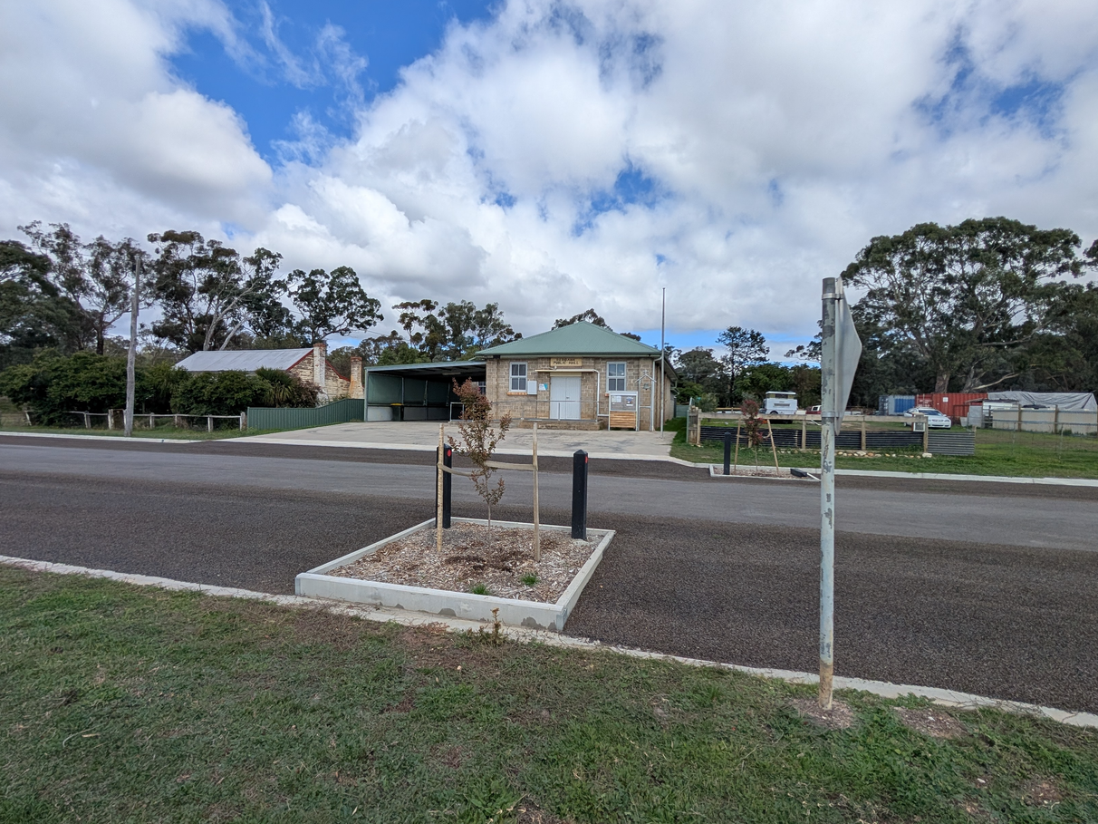 Pyrenees Shire Council has just completed a $250,000 streetscape upgrade to Navarre Street: new kerb and channel, improved drainage, and Crepe Myrtle street trees. The previous open drain at the front has been filled and resolved.