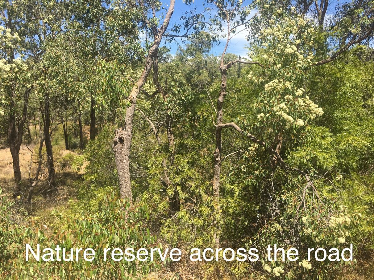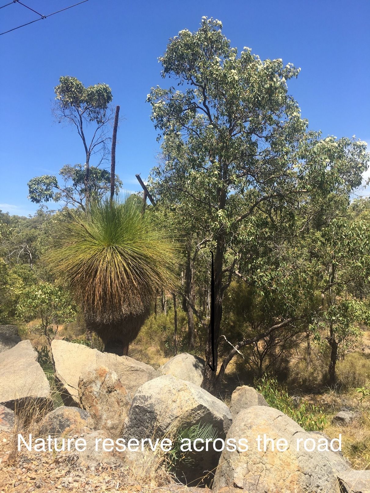 Currently in residence is a friendly community of tall trees, grass trees and other shrubs native to the area. Firebreak / service road has been recently cleared.