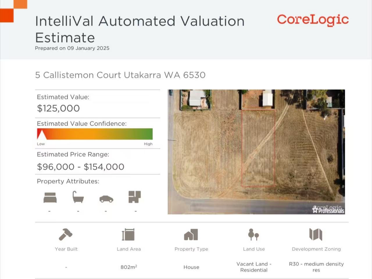 5 Callistemon Court is a residential land in Utakarra. It sits on a 802m² lot. It is located within Greater Geraldton council, with no bushfire, flood, or heritage overlays detected. The closest schools are St John's School and Champion Bay Senior High School. It has reliable NBN Fibre to the Premises and 4G mobile coverage.