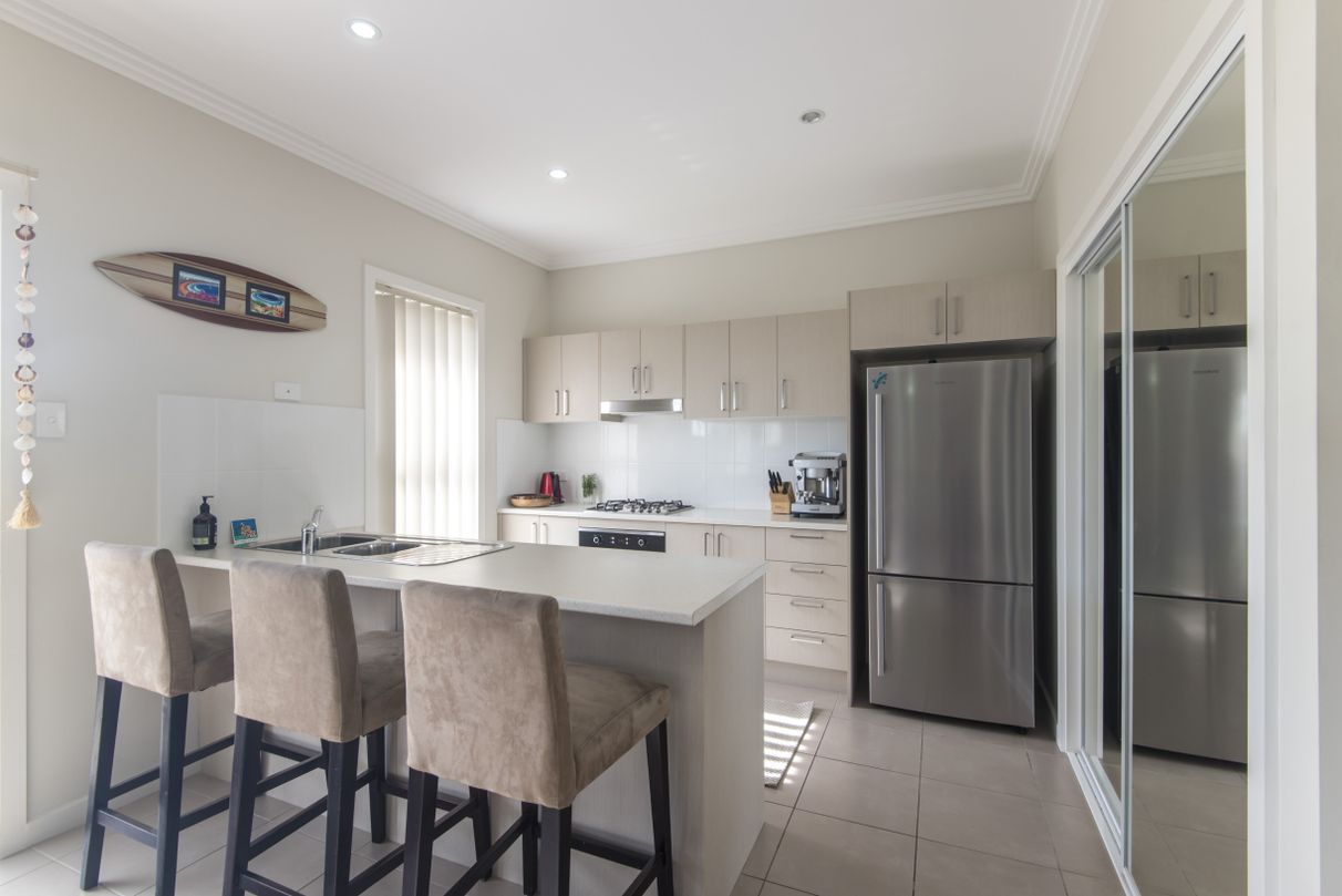 - Modern, spacious kitchen with stainless steel dishwasher, breakfast bar and maximum storage