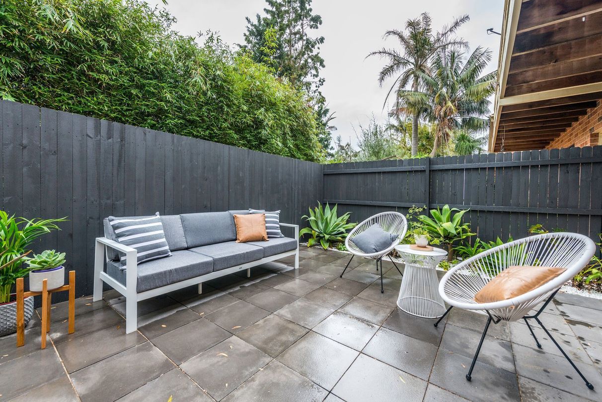 Seamlessly integrating through bi-fold doors to the completely transformed north facing sun-drenched courtyard, presenting the ultimate canvas for entertaining or simply enjoying a moment of peace in the sun - complete with new pavers and fencing splashed in a modern hue, perfectly complementing the lush and low maintenance garden beds.