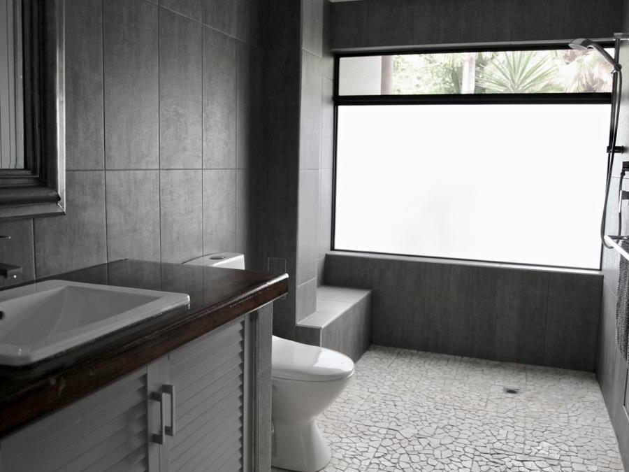 The double entry bathroom has been fully renovated with a sleek, modern finish, completing this comfortable and stylish home.
