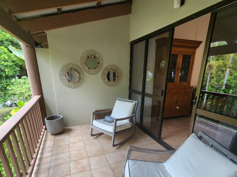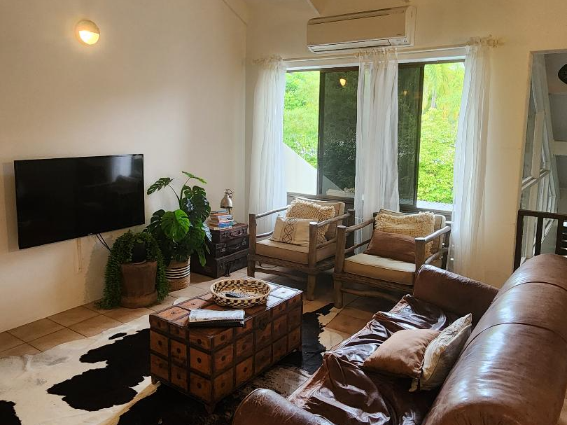 This tastefully fully furnished home (Wifi included) features a spacious upstairs living area with air-conditioning, fans, a fully equipped modern kitchen with Nespresso machine, and a private balcony — ideal for enjoying your morning coffee in the tropical breeze.