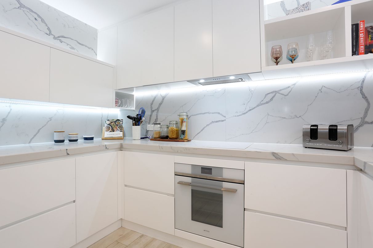 Sleek Scandinavian designed kitchen with Smeg appliances throughout