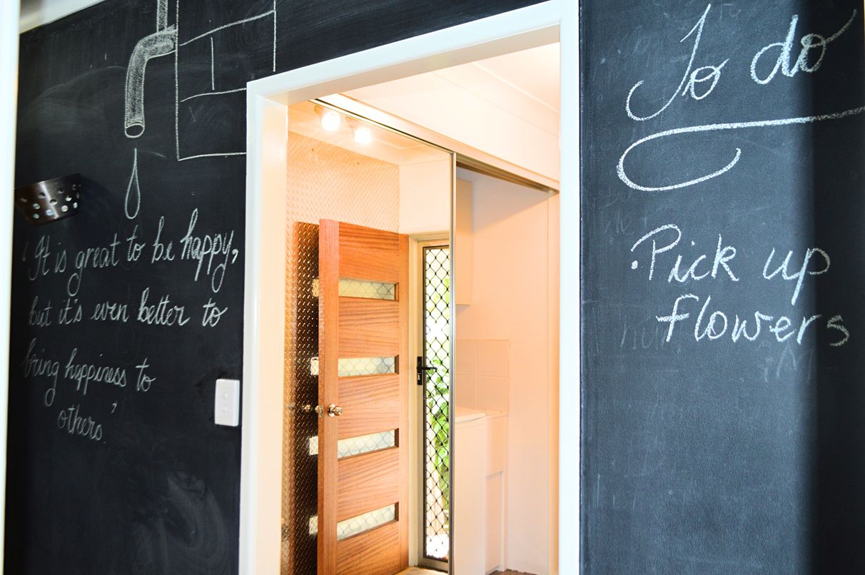 • Neat laundry hidden behind mirror sliding doors, also acts as a drying cupboard with the hotwater system installed in this handy space, ideal for airing shoes and wet umbrellas