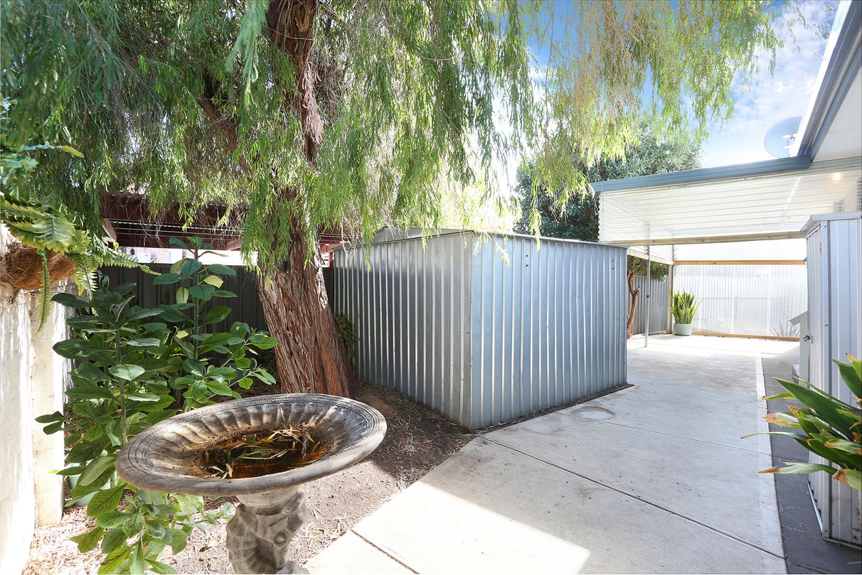 A large undercover entertaining area with plenty of protection from the elements, a rear garden area with clothesline and just a splash of lawn, a large 3m x 2m garden shed plus a small storage shed.