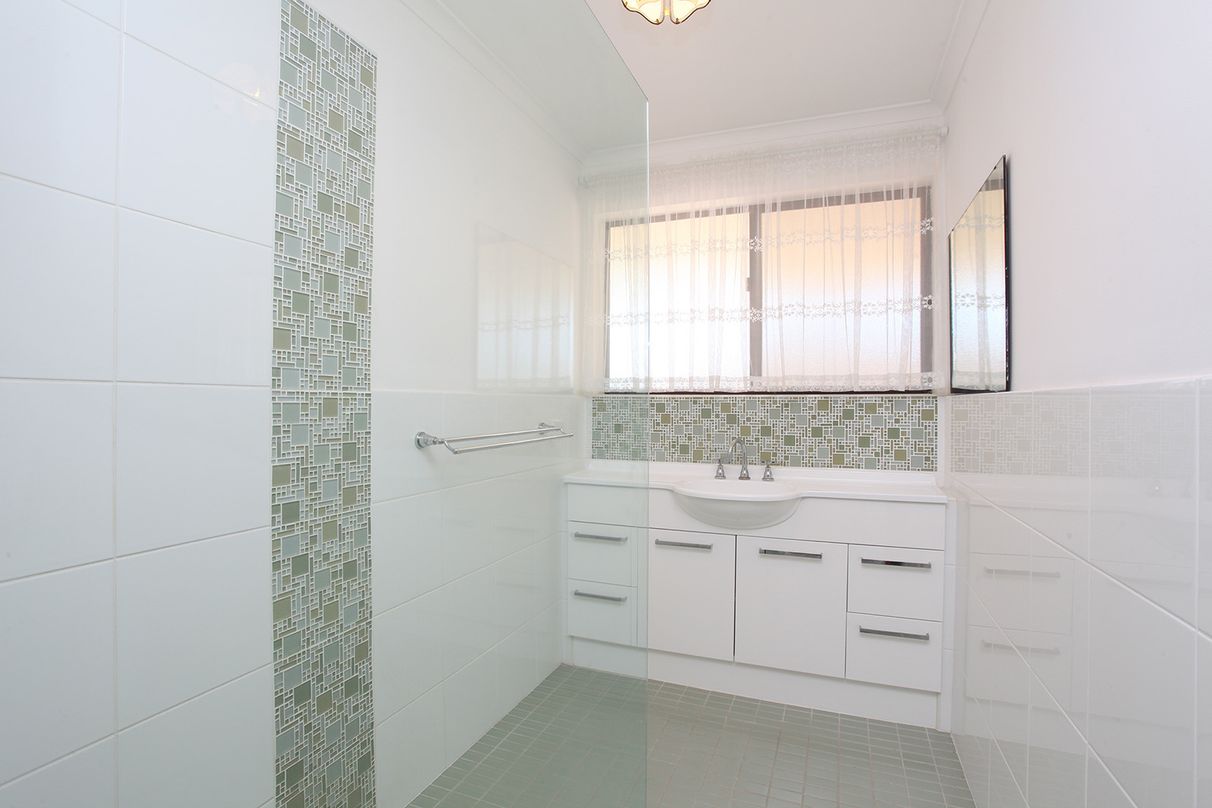 The well sized main bedroom has a large built in robe, with additional storage provided by a linen cupboard in the hallway.