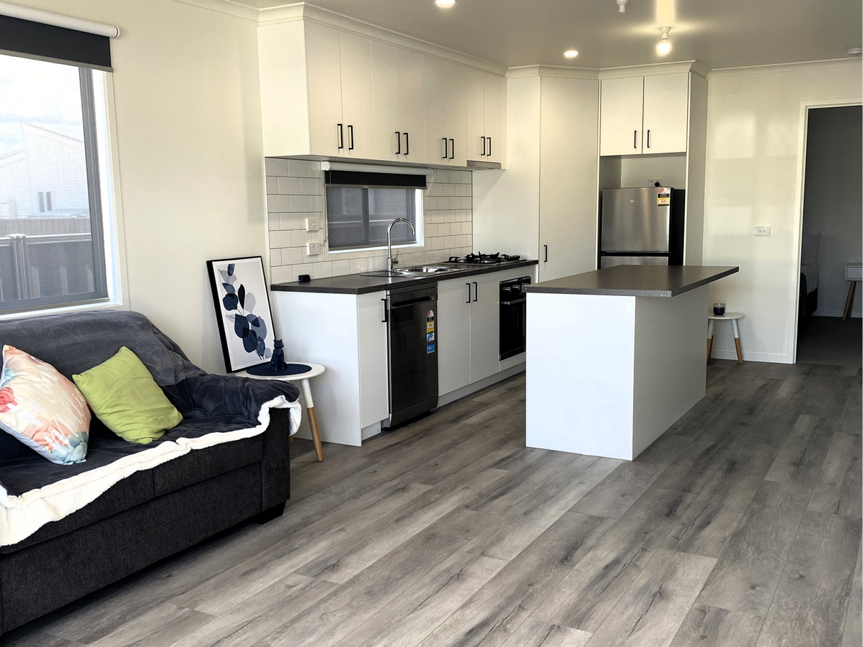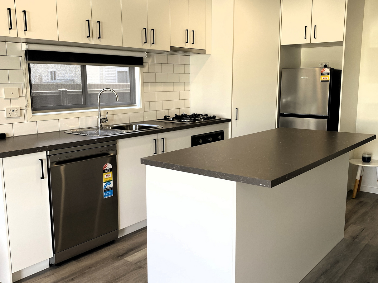 • Large open plan living spaces with fully equipped kitchen and large pantry