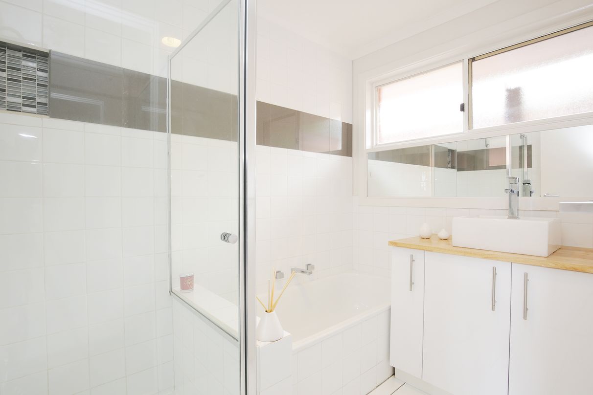 Two very generous bedrooms with built-in robes, each serviced by the gorgeous, brand new bathroom with full-height tiling, bath, separate shower, timber-top vanity and separate toilet.