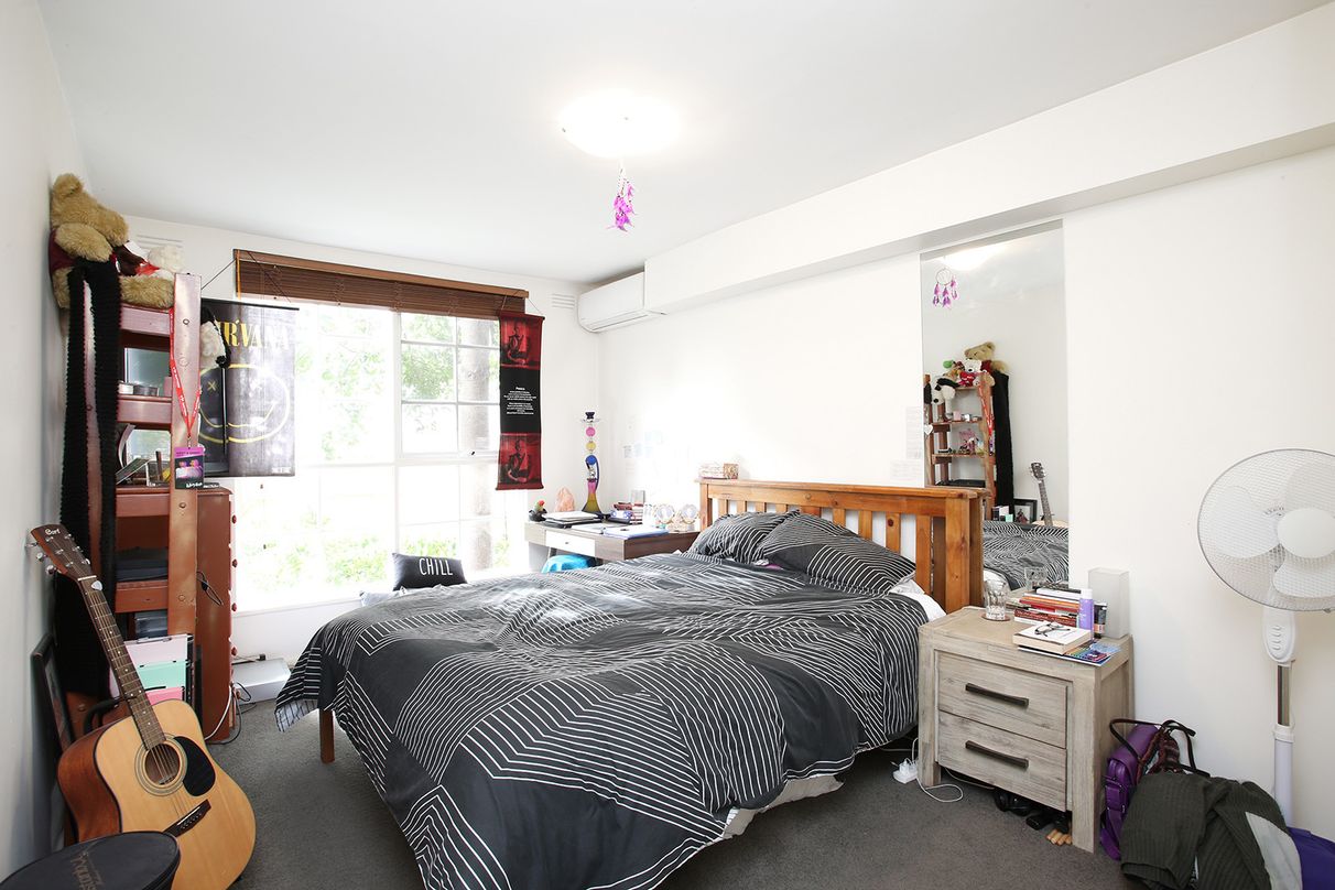 Two generous bedrooms with robes, the master with split system A/C and both within steps of the huge, sleek bathroom with floor-to-ceiling tiles, frameless double shower, twin vanities and separate toilet plus separate laundry.