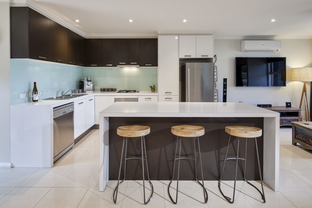 A generous open plan zone unit with a dining area, a light filled living room and a contemporary kitchen, which acts as a conduit between the two spaces; it is well appointed and has quality stainless steel appliances including a dishwasher plus a long island bench which creates the perfect space for casual mealtimes. An extensive timber deck, low maintenance court yard that is accessible via double sliding doors, allowing a seamless transition between indoor/outdoor living.