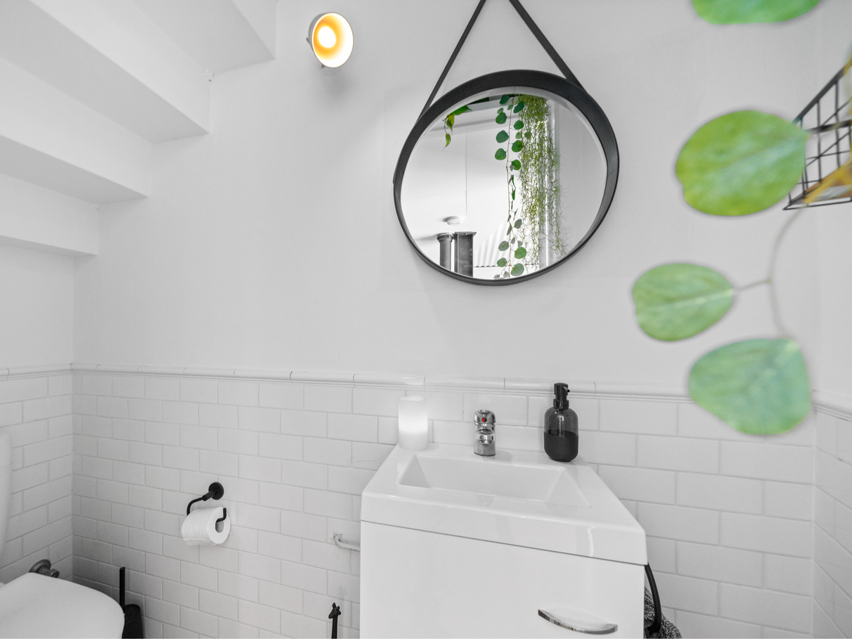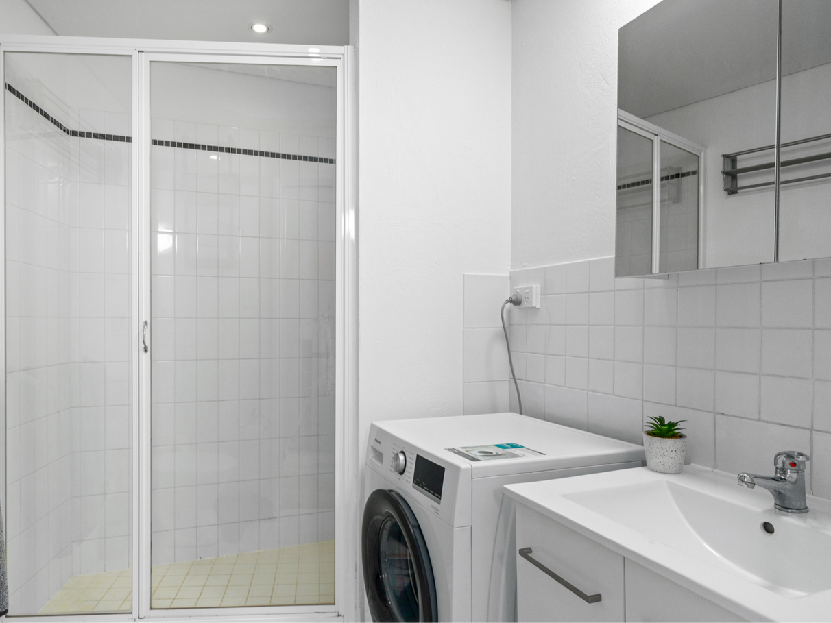 • Stylish combined bathroom/laundry with storage and washer/dryer space
